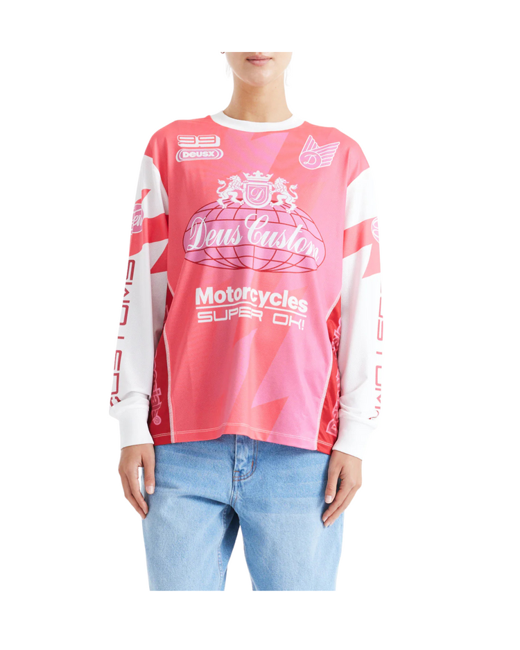 ซีซันใหม่มาพร้อมเสื้อเจอร์ซี่มอเตอร์ไซค์ตัวใหม่จาก Deus — Thunder Long-Sleeve Moto Top ที่โดดเด่นด้วยความเบาสบาย สีตัดกันจัดจ้านในสไตล์วินเทจ ใส่เป็นเลเยอร์ก็ลงตัว หรือใส่เดี่ยวพับชายเข้ายีนส์ก็ดูดี