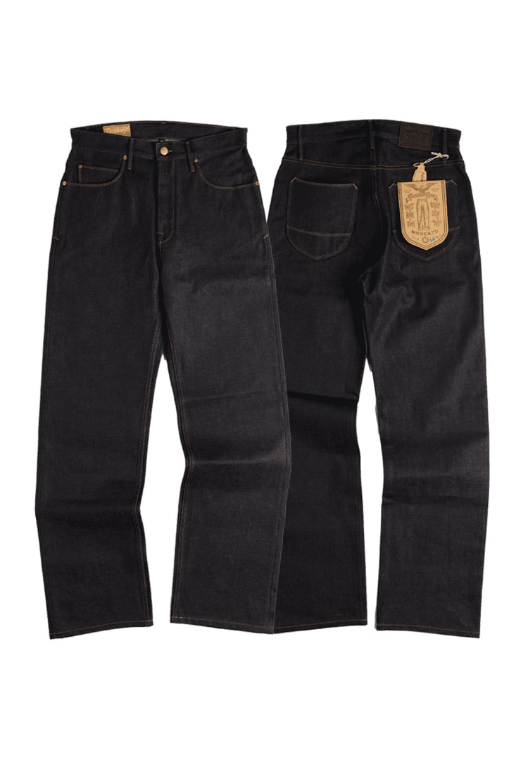 กางเกงยีนส์โมเดล Modesto Fit - Workwear Fit จาก Freenote ลักษณะทรงนั้นเป็นแบบ Classic straight คือขากระบอกตรง ต้นขามีพื้นที่ใส่สบาย มาพร้อมช่วงขากว้าง และเป็นเอวสูง ตัดเย็บด้วยผ้าเดนิมน้ำหนัก 14.5oz จาก Kaihara mills โรงทอชื่อดังของญี่ปุ่น มาพร้อมสีเข้มแบบ Dark indigo ใช้การทอด้วยแรงดึงสูง ( High tension ) ให้เนื้อผ้าแน่น และใช้เส้นด้ายที่มีขนาดสม่ำเสมอกัน สร้างเนื้อผ้าเดนิมที่ปั้นเฝดได้คมชัดสวยงามตามการใช้งานของแต่ละคน ตัวผ้านั้นเป็นผ้าดิบที่ผ่านกระบวนการ Sanforized มาแล้ว สามารถใส่ได้เลยครับ