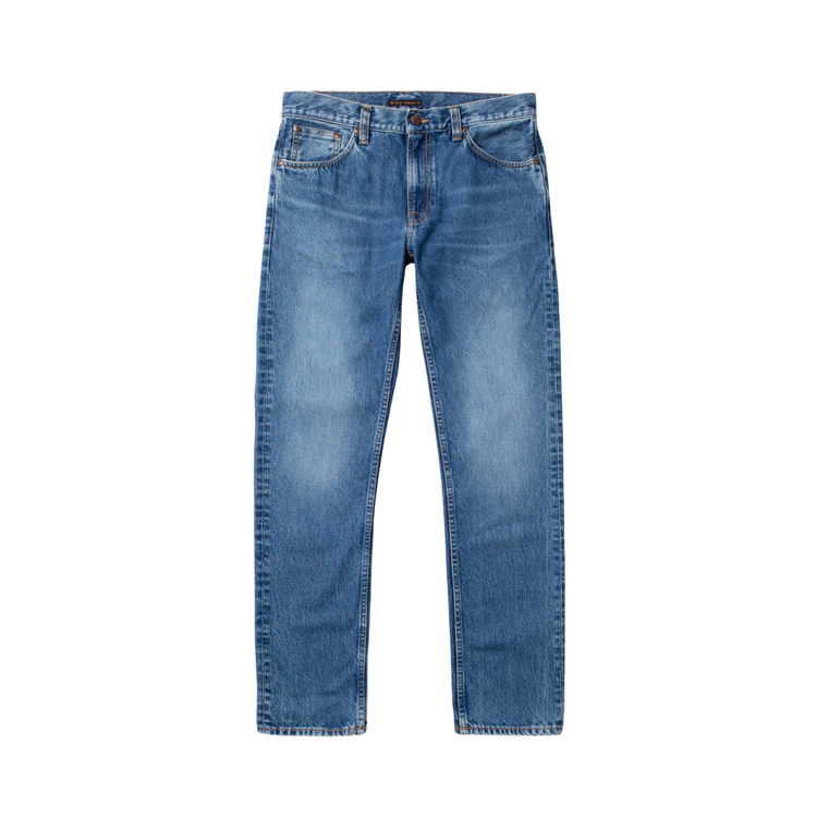 กางเกงยีนส์ทรงปกติ ขาตรง มาพร้อมการฟอกสีน้ำเงินกลาง (mid-blue wash) ที่มีการไล่เฉดสีอย่างประณีต ให้ความรู้สึกดิบเท่แต่ยังคงความเนี้ยบ มีเสน่ห์ด้วยการเล่นระหว่างร่องรอยการขัดถูที่ดูสงบ และเอฟเฟกต์ลายหินอ่อนที่มีชีวิตชีวา ผ้าเดนิมดูสะอาดคมชัด พร้อมโทนสีน้ำเงินสดใสที่ตัดกับเฉดอุ่นได้อย่างนุ่มนวล ความลงตัวระหว่างเฉดสีน้ำเงินและความประณีตนี้เองที่ทำให้กางเกงยีนส์คู่นี้โดดเด่นไม่เหมือนใคร!