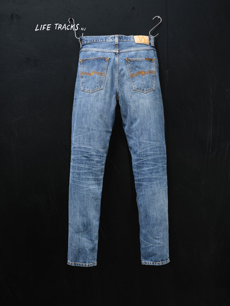 Steady Eddie II Raw Tracks ถูกสร้างขึ้นเพื่อจำลองรอยเฟดและร่องรอยการสวมใส่ของกางเกง Nudie Jeans ตัวต้นแบบอย่างแม่นยำ ทุกดีเทลถูกบันทึกและถ่ายทอดลงบนกางเกงตัวใหม่ด้วยกระบวนการที่พิถีพิถัน