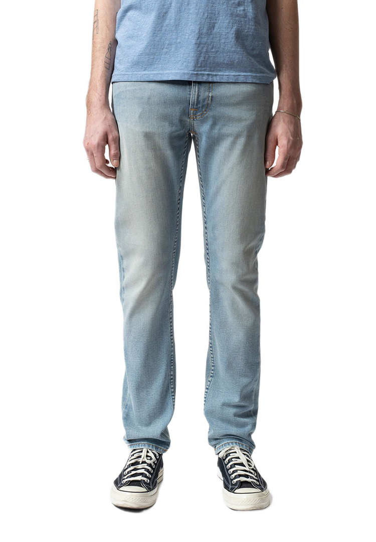 กางเกงยีนส์ทรง Slim Tapered Fit ช่วงบนเข้ารูปแบบไม่รัดมาก แล้วแคบลงช่วงเข่าถึงปลายขา เป้าหน้าเป็นซิป รุ่นนี้ผลิตด้วยผ้า Comfort stretch denim น้ำหนัก 12.5oz ซึ่งมีส่วนผสมของ Organic cotton 99% ร่วมกับเส้นใยผ้ายืด Elastane 1% ช่วยเพิ่มความยืดหยุ่นใส่สบายและกระชับ ผ่านการฟอกมาในโทนสีฟ้าอ่อนสไตล์ Bright wash, Sun bleach ที่ดูอบอุ่น เป็นอีกสไตล์ที่นำไปแมทช์การแต่งตัวได้สนุกหลากหลาย