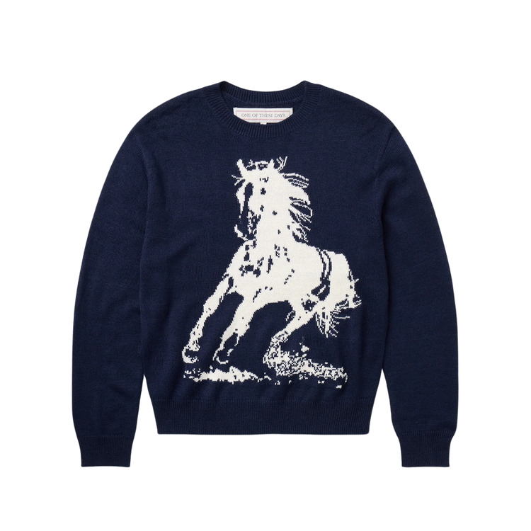 ONE OF THESE DAYS RUNNING HORSE KNIT SWEATER - NAVY