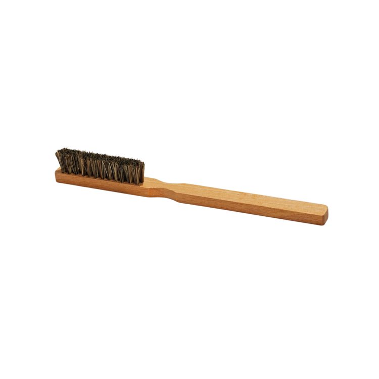 แปรงทำความสะอาดขอบรองเท้า (Welt Cleaning Brush) ช่วยดูแลในบริเวณที่เข้าถึงยากของรองเท้า ซึ่งมักสะสมสิ่งสกปรกและฝุ่น แปรงนี้ผลิตจากขนม้าแท้ 100%