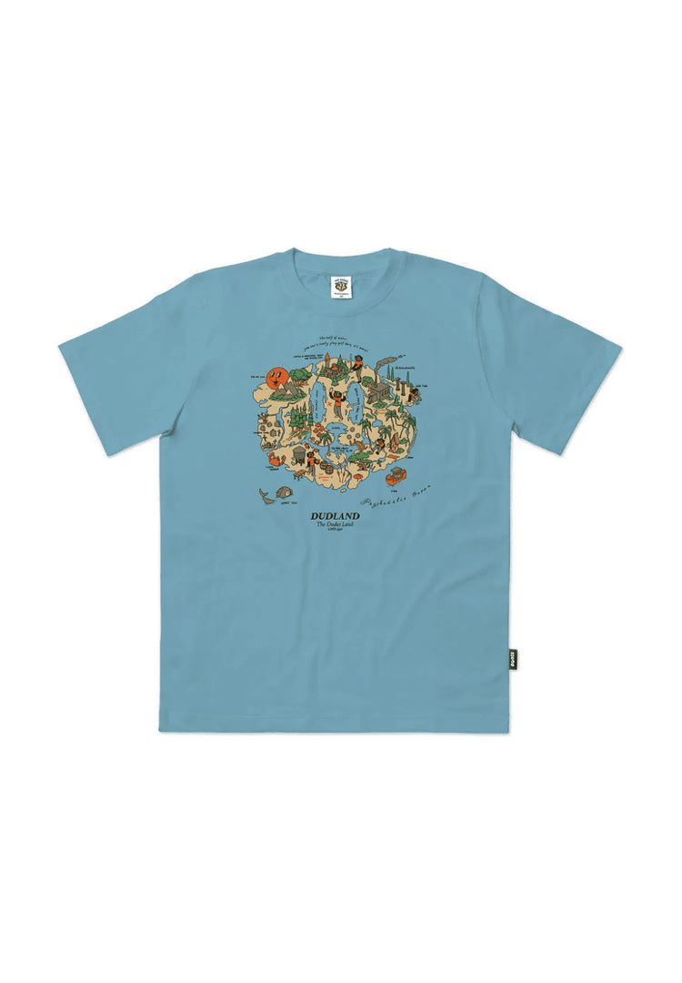 เสื้อยืดทรง Straight - Relaxed fit ตัดเย็บด้วยเนื้อผ้าทอจากเส้นใย Organic cotton 100% ในลวดลาย “DUDLAND” เกาะแสนสนุกที่มีทุกอย่างภายในเกาะ มีเข้ามาให้เลือก 2 สี ได้แก่ Off White และ Milky Blue